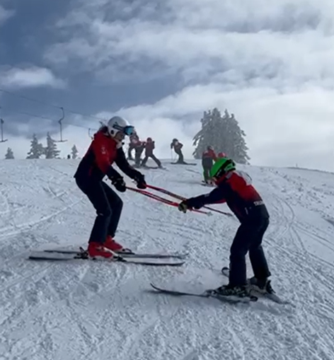 - jeder Muss jeweils mit den Ski ein wenig nachtreten, damit das Ganze funktioniert